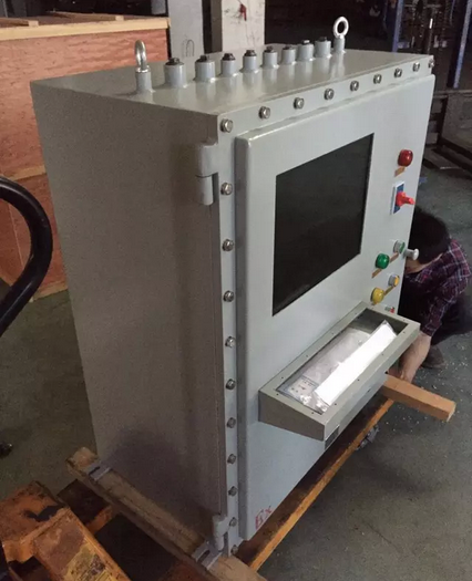 PLC帶觸摸屏做成防爆控制柜或者防爆控制箱外形可以根據(jù)用戶的不同需求而定,一般為立式、琴臺(tái)式,壁式等等,內(nèi)置PLC與觸摸屏連接,可以通過(guò)防爆鍵盤,防爆鼠標(biāo)進(jìn)行控制即可,觸摸屏密封保護(hù)為5mm厚度的鋼化玻璃進(jìn)行防爆密封處理。